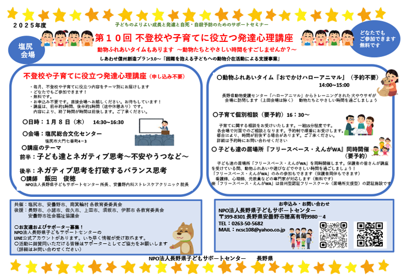 | 主催 | 長野県、NPO法人長野県子どもサポートセンター |