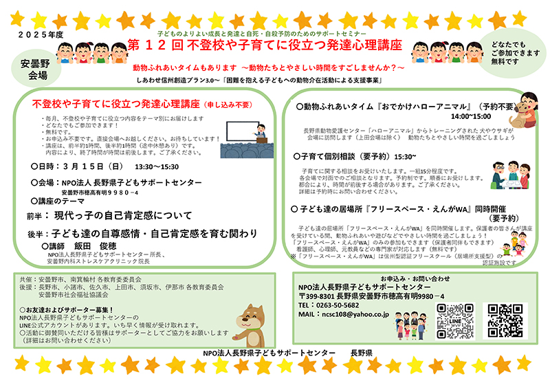| 主催 | 長野県、NPO法人長野県子どもサポートセンター |