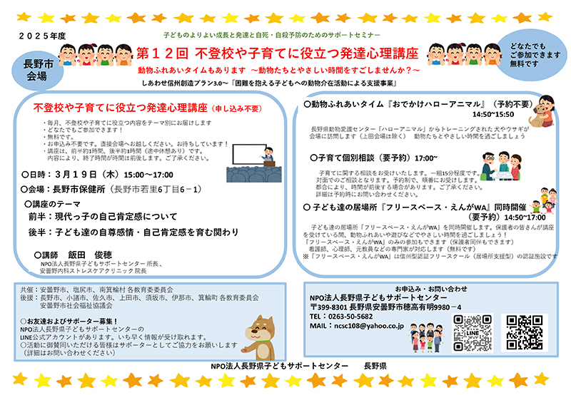 | 主催 | 長野県、NPO法人長野県子どもサポートセンター |