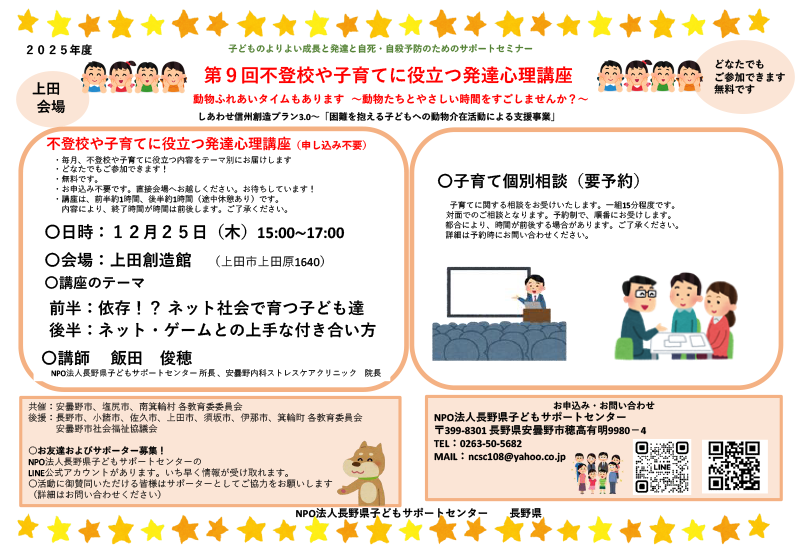 後援長野市、小諸市、佐久市、上田市、須坂市、伊那市、箕輪町 各教育委員会、安曇野市社会福祉協議会